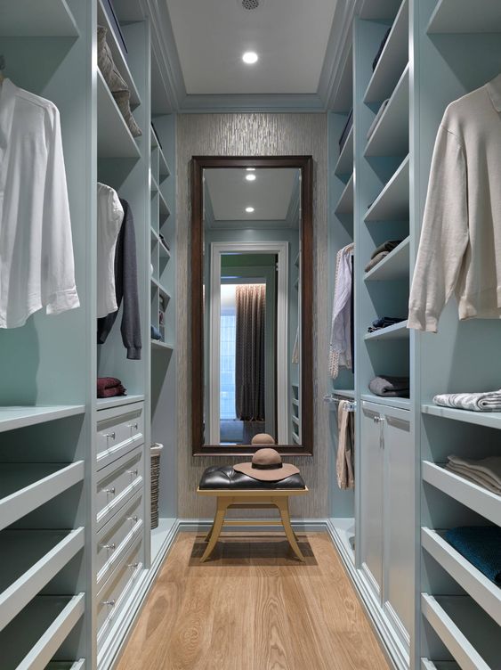 Зеркало в классической гардеробной играет важную роль. Оно не только помогает при примерке одежды, но и визуально увеличивает пространство. Зеркало может быть установлено на стене или на двери шкафа, а также в виде передвижного элемента на колесиках.